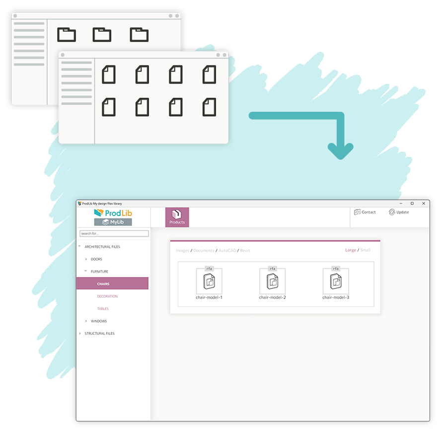 With ProdLib application, you can always be sure you have the latest updates in use. Our application automatically checks for any available updates to the products, technical information, or files themselves. When updates are available, you will be promptly notified, and you can update the files with just one click.